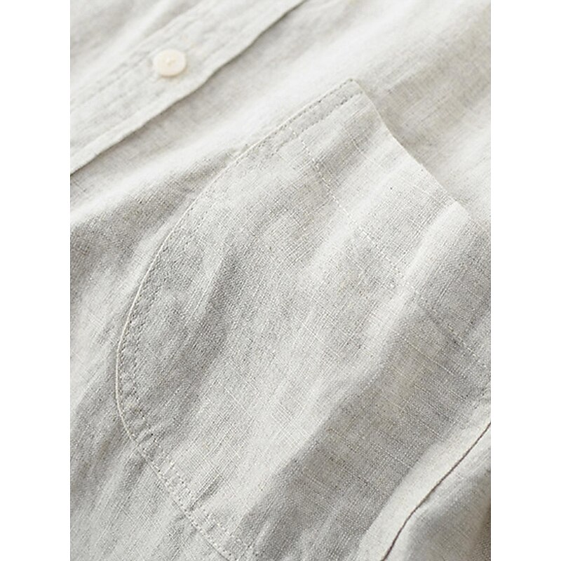 45% Linen Pocket Men's Linen Shirt Shirt Button Up Shirt Summer Shirt Black White Navy Blue Long Sleeve Plain Lapel Spring &  Fall Outdoor Daily Clothing Apparel 6