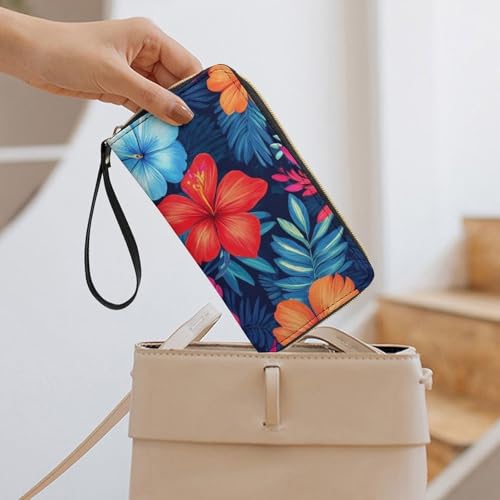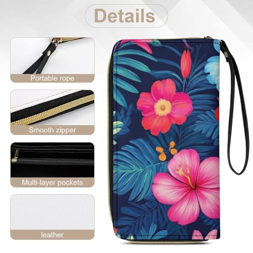 More information about Travel Purse Fashion Design, Huge Storage Capacity Wallet With Rope, Cute Decor Purse, Long PU Zipper Wallet Hawaiian Colorful Hibiscus Flowers Tropical Palm Tree Leaves