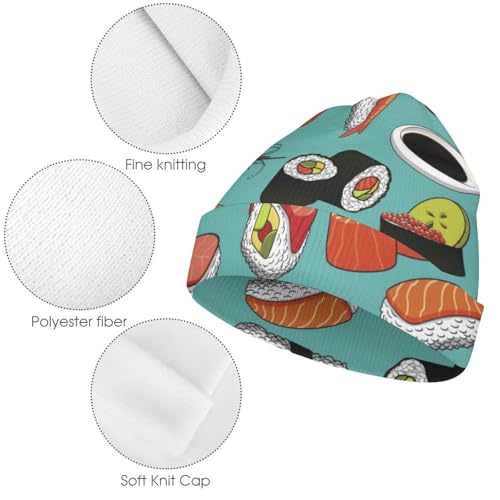 Sushi Pattern Kawaii Japanese-Style Kids Beanie Hat for for Girls Boys Children Cap Winter Knitted Chemo Cancer Headwear Accessories Gifts Decoration Black 1