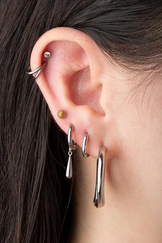• STYLE: 2mm Thick Hinged Dangling Teardrop Hoop Earrings
