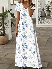 HOT ! Women's Floor length Casual Dress A Line Dress Summer Dress Elegant Vacation Vintage Regular Fit Floral Graphic Bohemian Short Sleeve V Neck U Neck Light Blue Summer Spring Fall
