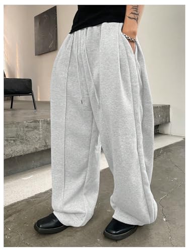 OYOANGLE Men's Baggy Sweatpants Drawstring Elastic Waist Loose Wide Leg Athletic Sweat Pants with Pockets 5