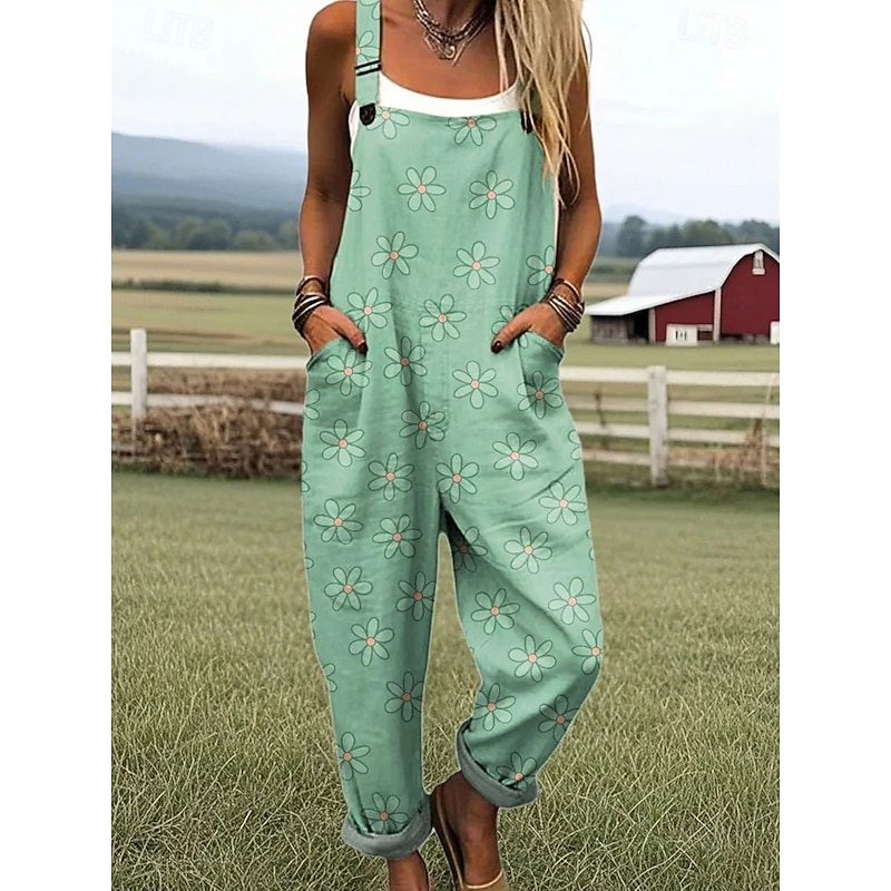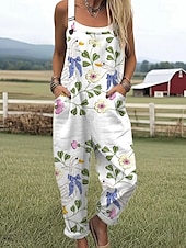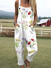 More information about Women's Dungarees Active Floral Sleeveless Sleeveless Harem Pocket Buttons Vacation Street Loose Fit White Yellow Light Green Summer