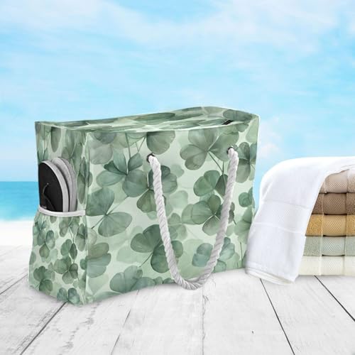 HOT ! Beach Bag - Large Tote Bags for Women Leaves Green Splash Ink Shoulder Bags Zipper Waterproof Sandproof for Travel Gym Swim Daily