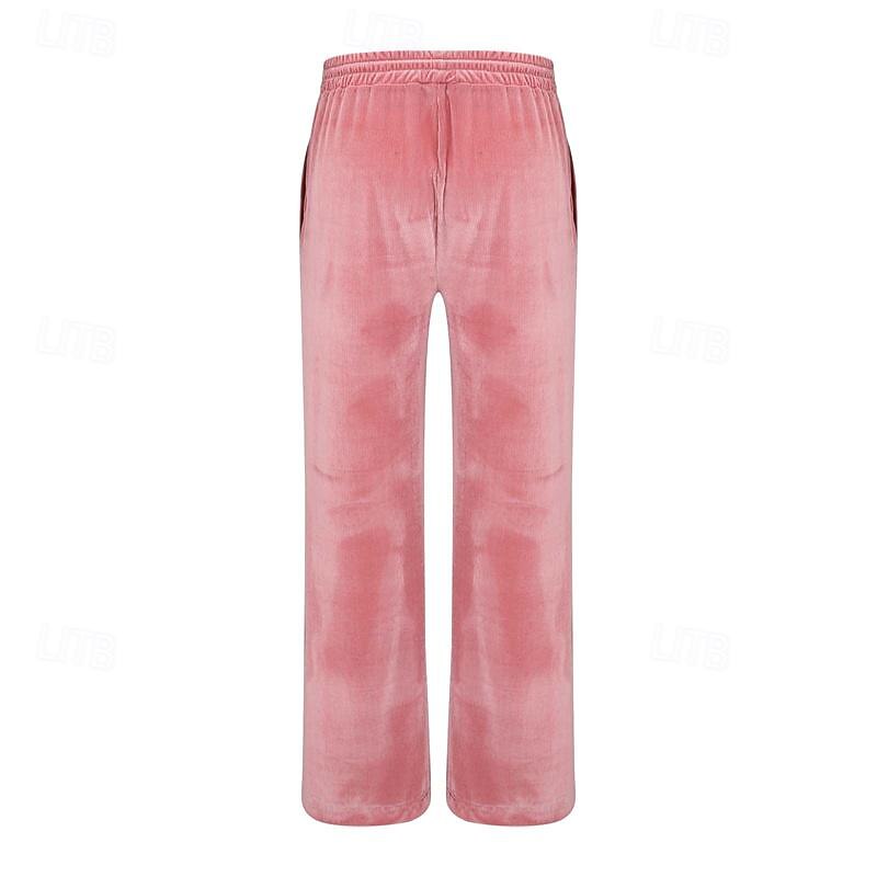 Men's Wide Leg Sweatpants Pocket Drawstring Elastic Waistband Solid Colored Breathable Soft Sports & Outdoor Athletic Indoor Streetwear Retro Vintage Loose Fit Black Pink Micro-elastic 43
