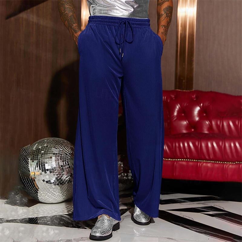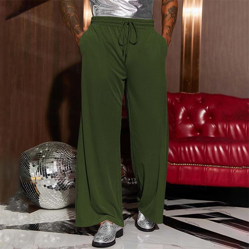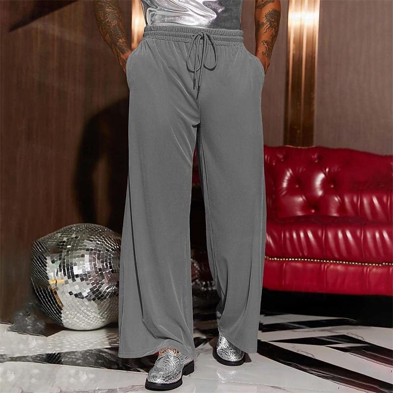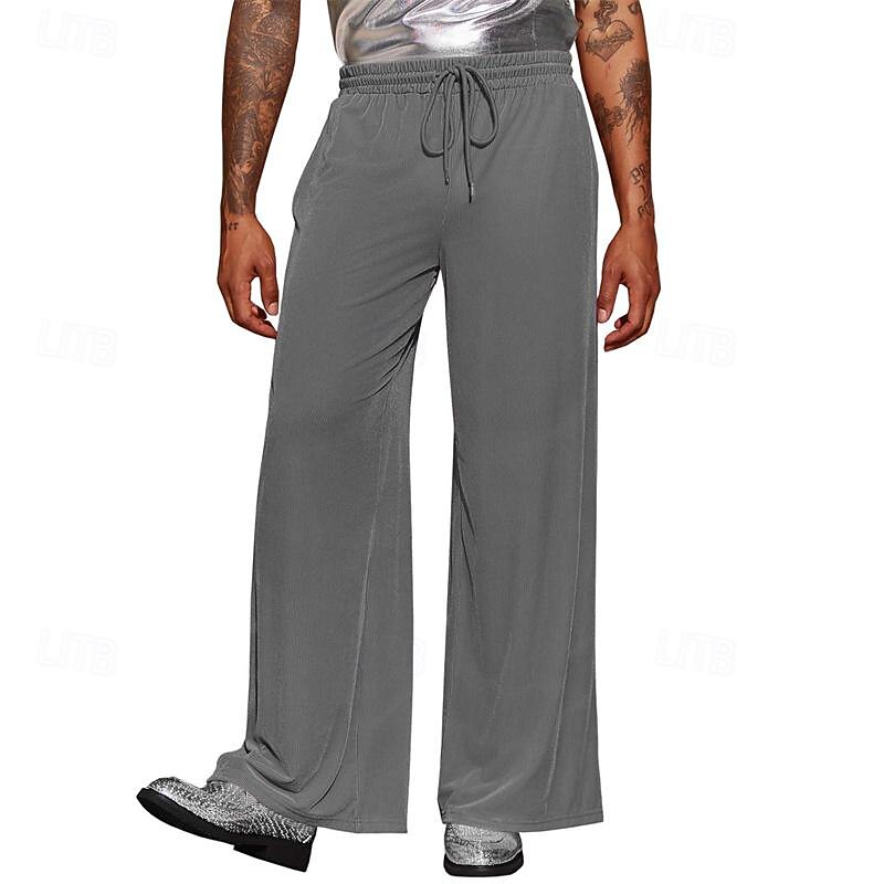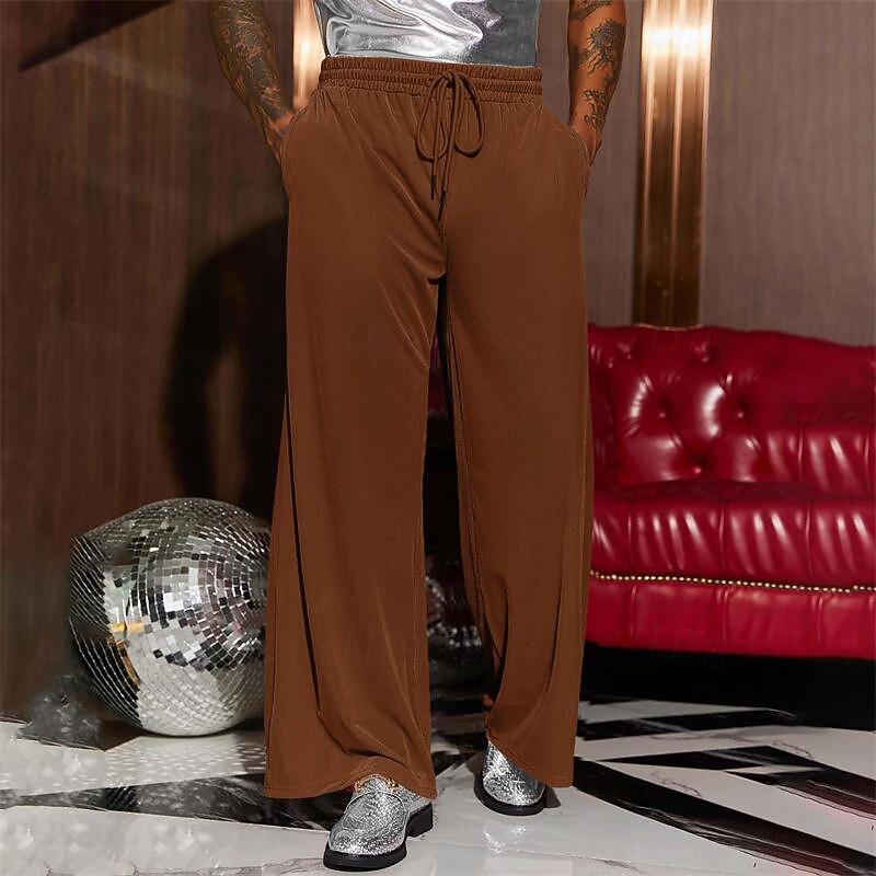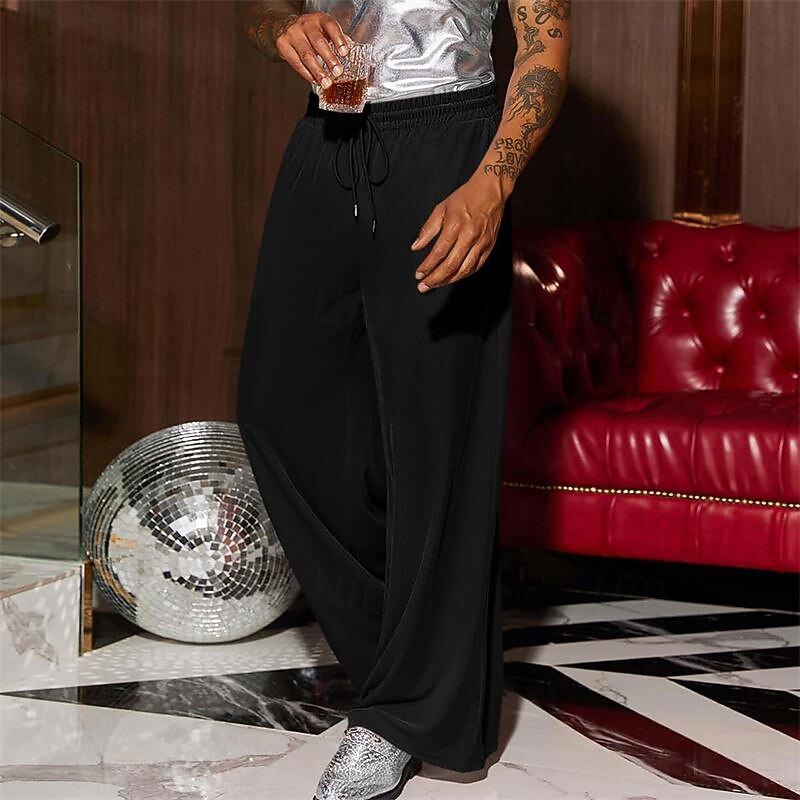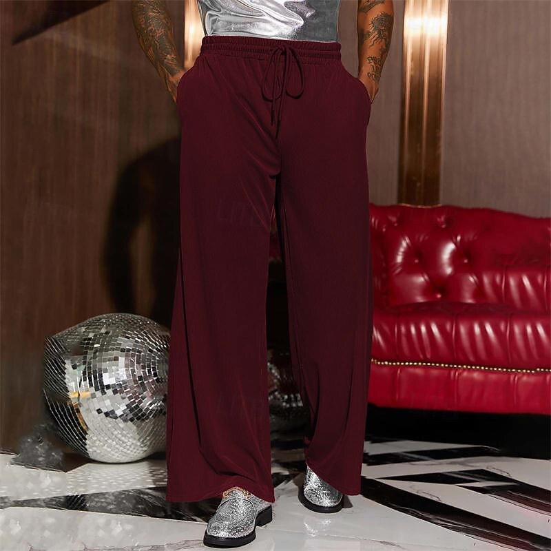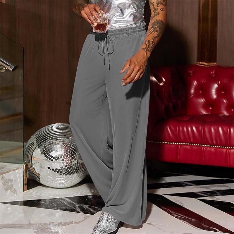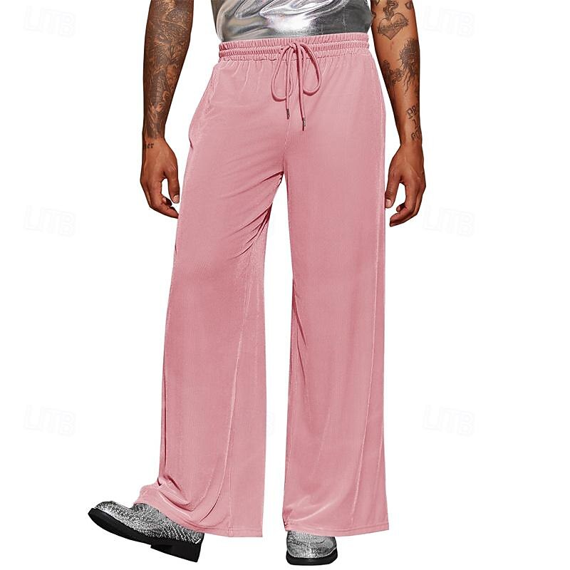 More information about Men's Wide Leg Sweatpants Pocket Drawstring Elastic Waistband Solid Colored Breathable Soft Sports & Outdoor Athletic Indoor Streetwear Retro Vintage Loose Fit Black Pink Micro-elastic