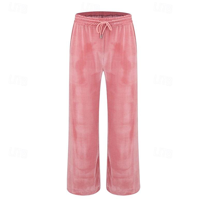 Men's Wide Leg Sweatpants Pocket Drawstring Elastic Waistband Solid Colored Breathable Soft Sports & Outdoor Athletic Indoor Streetwear Retro Vintage Loose Fit Black Pink Micro-elastic 24