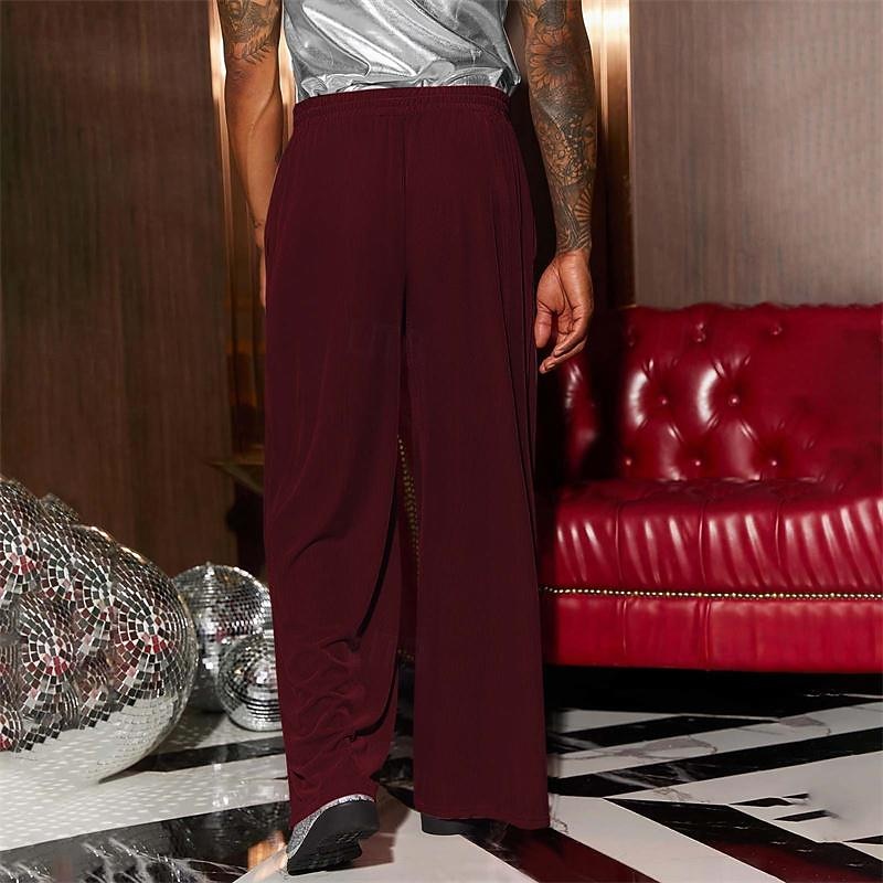 Men's Wide Leg Sweatpants Pocket Drawstring Elastic Waistband Solid Colored Breathable Soft Sports & Outdoor Athletic Indoor Streetwear Retro Vintage Loose Fit Black Pink Micro-elastic 45