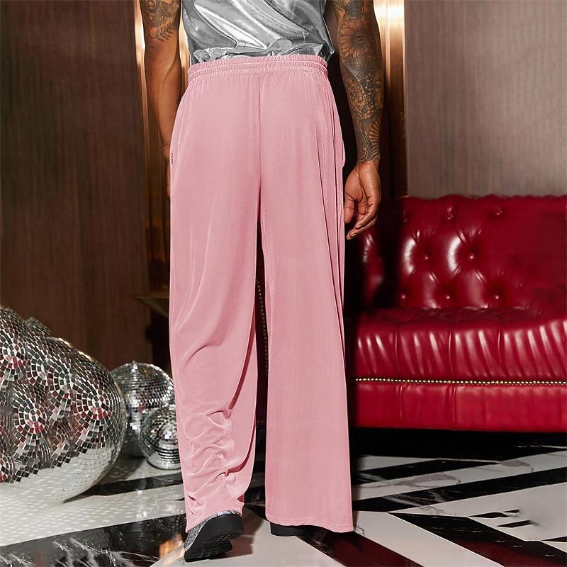 Men's Wide Leg Sweatpants Pocket Drawstring Elastic Waistband Solid Colored Breathable Soft Sports & Outdoor Athletic Indoor Streetwear Retro Vintage Loose Fit Black Pink Micro-elastic 36