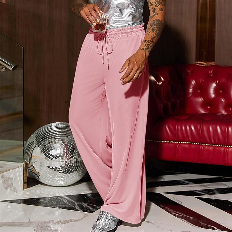 Men's Wide Leg Sweatpants Pocket Drawstring Elastic Waistband Solid Colored Breathable Soft Sports & Outdoor Athletic Indoor Streetwear Retro Vintage Loose Fit Black Pink Micro-elastic 26
