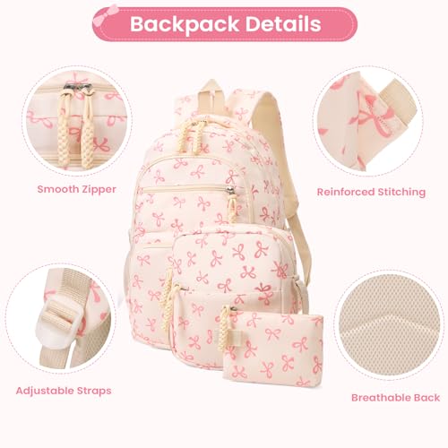 HOT ! Coquette Bow Backpack - Cute Kawaii Backpack Set Aesthetic Daypack Coquette Rucksack (A01 Bow Pink)