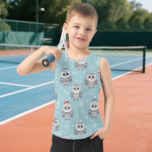 J JOYSAY Winter Owl Snowflake Blue Boys Tank Top Sleeveless Muscle Shirts Quick Dry Workout Active Sport Kids T-Shirts 3-15T 3