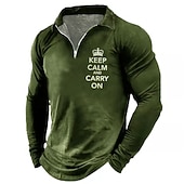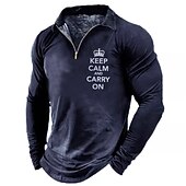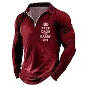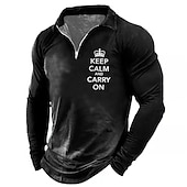 HOT ! Men's Long Sleeve Graphic Tee "Keep Calm And Carry On" Quarter-Zip