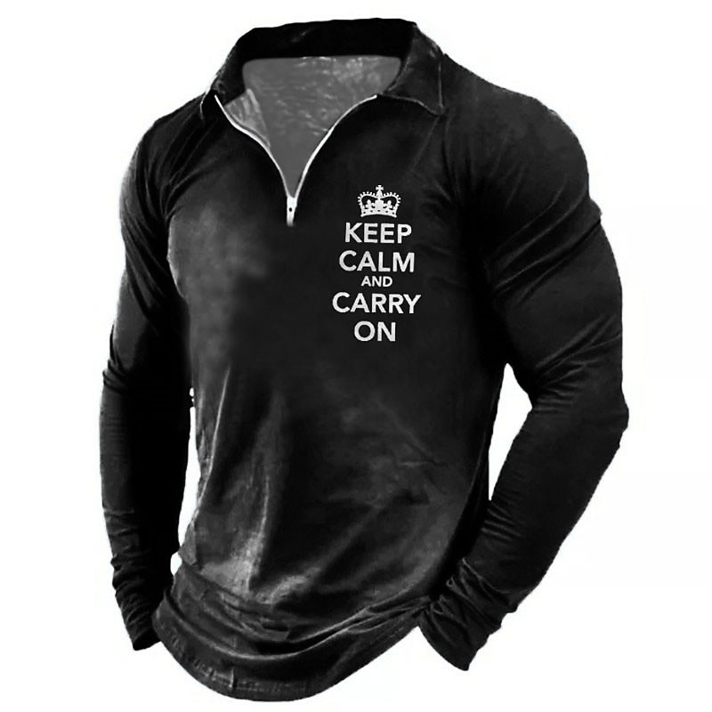 Men's Long Sleeve Graphic Tee "Keep Calm And Carry On" Quarter-Zip 10