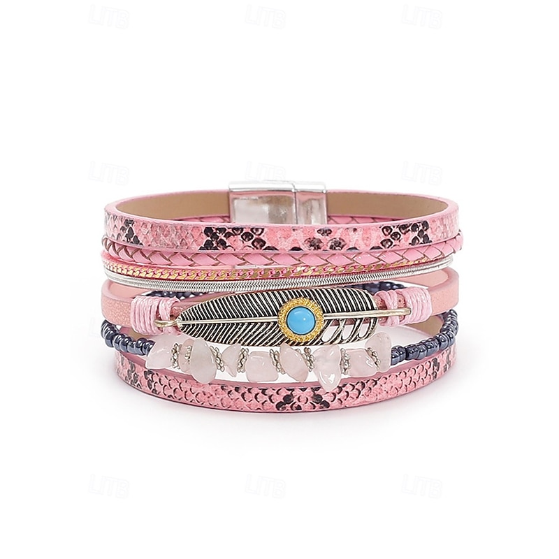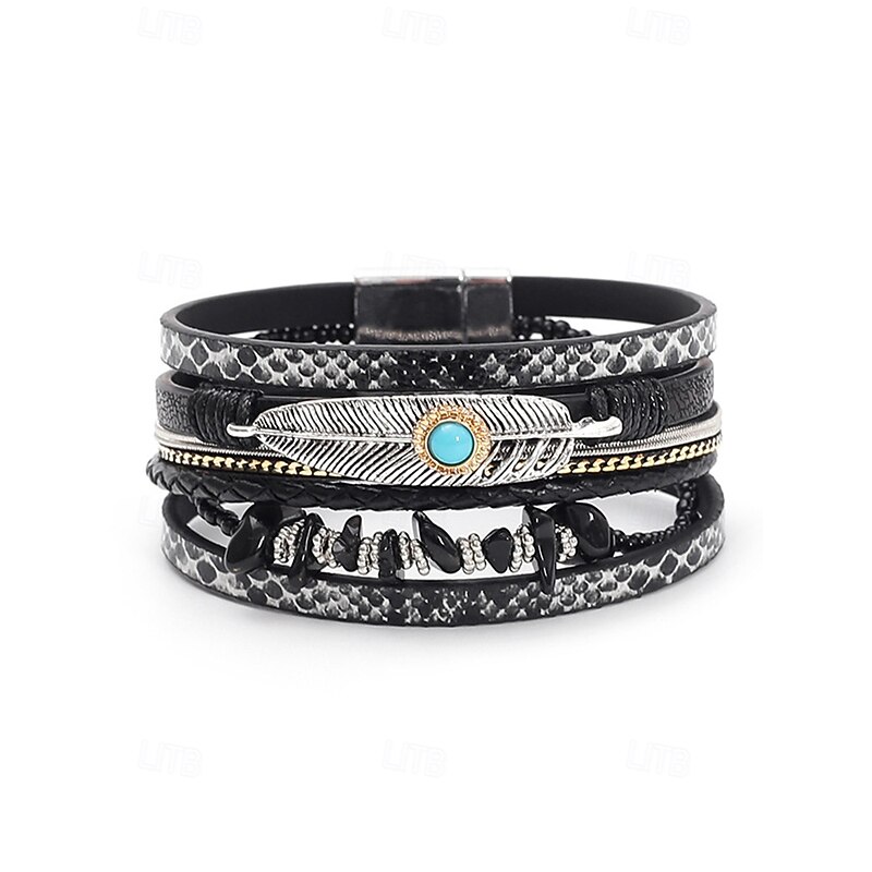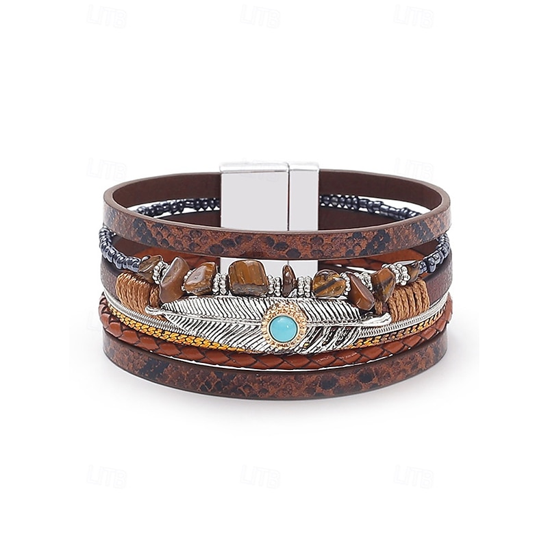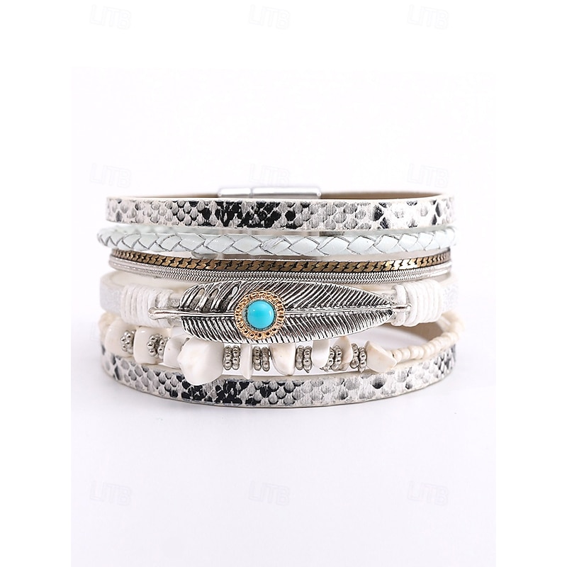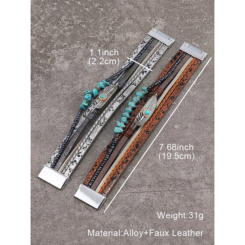 $11.99 - Boho Leather and Turquoise Magnetic Bracelet Wristband - Adjustable multi-layered design with feathers and gemstones, perfect for casual, summer and festival styles 2025. Shop for cheap Women's Bracelet online? Buy at lightinthebox.com on sale today!