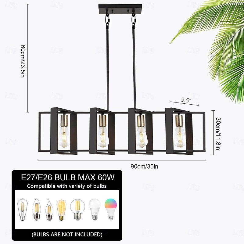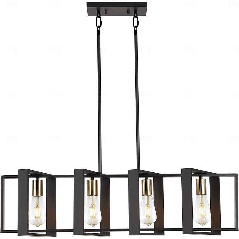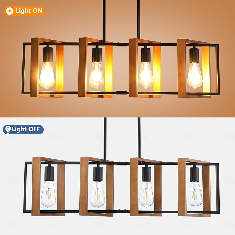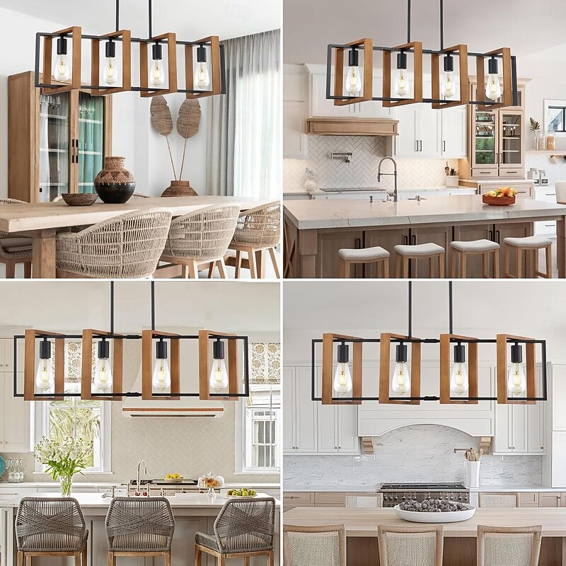 Farmhouse Small Pendant Light 1 Head 4 Head Fixture Kitchen Island Hanging Lamp with Cord Black Finish Wood Frame Chandelier for Hallway Entryway Closet Bedroom AC110V AC220V E27 Bulb 24