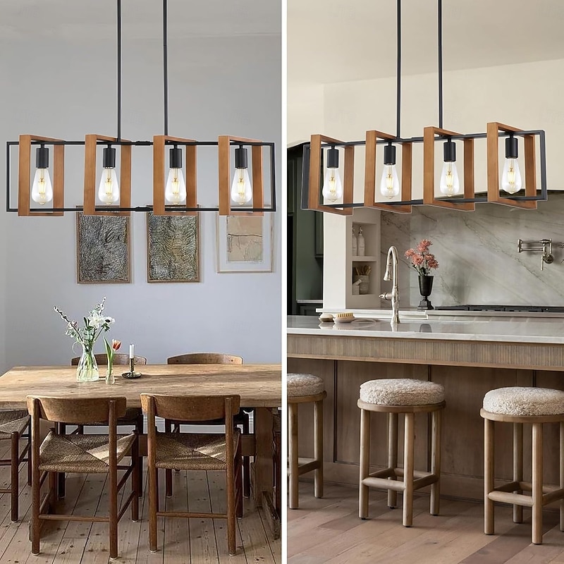 Farmhouse Small Pendant Light 1 Head 4 Head Fixture Kitchen Island Hanging Lamp with Cord Black Finish Wood Frame Chandelier for Hallway Entryway Closet Bedroom AC110V AC220V E27 Bulb 8