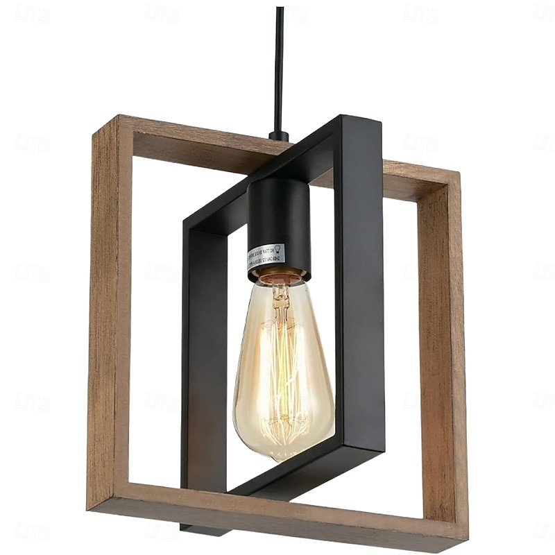 Farmhouse Small Pendant Light 1 Head 4 Head Fixture Kitchen Island Hanging Lamp with Cord Black Finish Wood Frame Chandelier for Hallway Entryway Closet Bedroom AC110V AC220V E27 Bulb 1