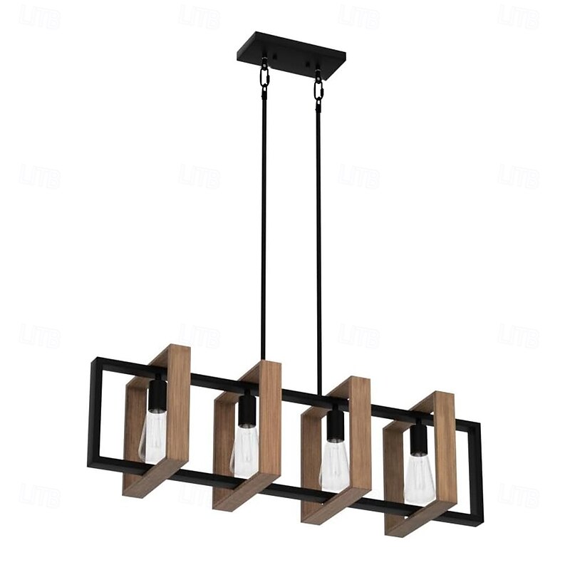 Farmhouse Small Pendant Light 1 Head 4 Head Fixture Kitchen Island Hanging Lamp with Cord Black Finish Wood Frame Chandelier for Hallway Entryway Closet Bedroom AC110V AC220V E27 Bulb 15