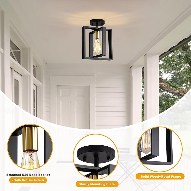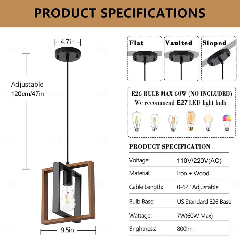 HOT ! Farmhouse Small Pendant Light 1 Head 4 Head Fixture Kitchen Island Hanging Lamp with Cord Black Finish Wood Frame Chandelier for Hallway Entryway Closet Bedroom AC110V AC220V E27 Bulb