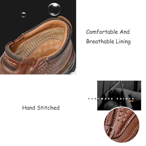 Tokouk Mens Breathable Hand Stitching Leather Slip On Ankle Boots, Classic Outdoor Moccasin Chukka Boots Non-Slip Casual Hiking Boots 5