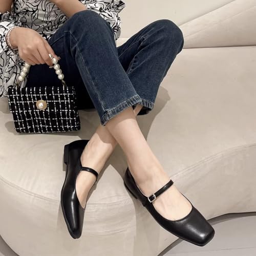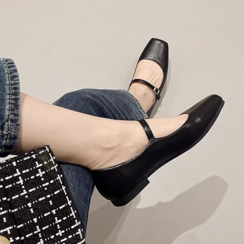 Hee grand Leather Mary Jane Flats Women Dressy Comfortable Square Toe Adjustable Buckle Strap Ballet Flats 6