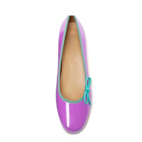 Lutalica W Women's Vintage Round Toe Patent Leather Two-Toned Comfort Dress Bow Ballet Flats Shoes 4