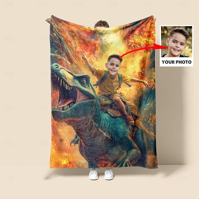 $22.99 - Little Boy Riding Dinosaur Personalized Photo Blanket Customizable Soft and Cozy Throw Features a Fun Dinosaur Design with Your Photo Perfect for Kids' Rooms Gifts or Keepsakes Durable and Comfortab 2025. Shop for cheap Textiles online? Buy at lightinthebox.com on sale today!