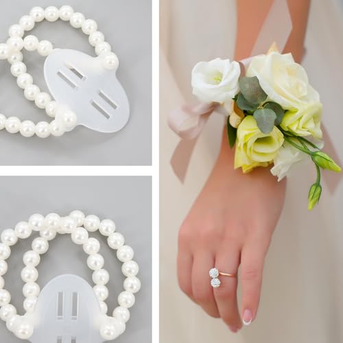 MVVM Corsage Wristlet Band,12pcs Wrist Corsage Bracelets Pearl Stretch Elastic Wristlets for Wedding Party Prom Diy Wrist Corsage Supplies Bride Bridesmaid Hand Flower 4