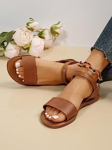 Verdusa Women's One Band Ankle Strap Flat Sandals Open Toe Walking Shoes 5