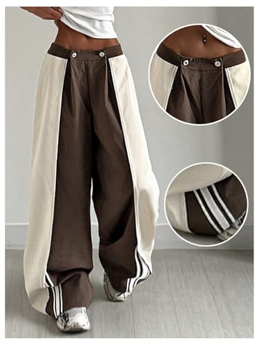 • Athletic Pants, Gym Clothes, Streetwear Pants, Hip Hop Pants, Wide Leg Pants, Color Block, Wide Leg, Button Closure, Contrast Striped, Low Waist