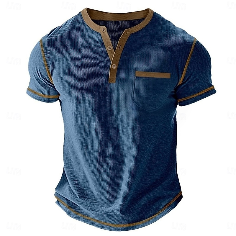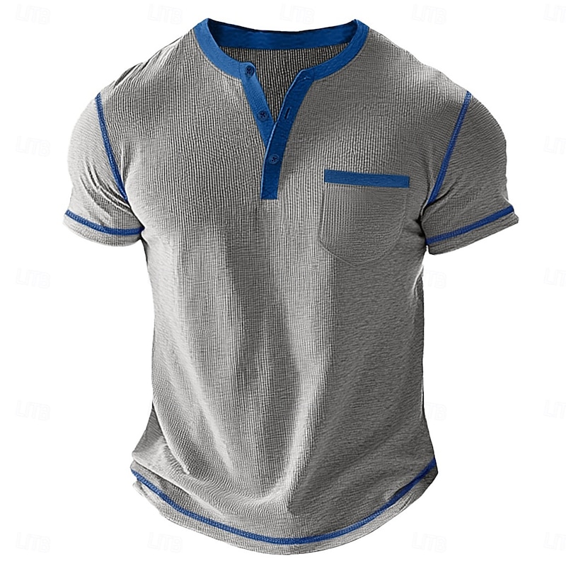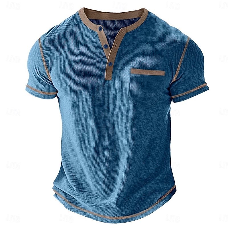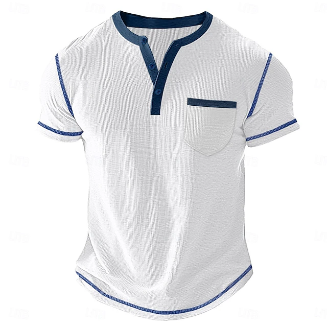 More information about Men's Waffle Henley Shirt Tee Short Sleeve Solid Color Plain Fashion Designer Casual Color Block Buttons Henley Outdoor Casual Daily Summer All Seasons Black White Light Blue Henley T-Shirt