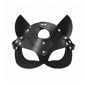 Highlights [Fabric] : Crafted from high-quality PU leather, this mask offers durability with a smooth, sleek finish. The leather material ensures a comfortable fit that adapts to your facial contours while providing a touch of luxury and style. [Design Highlights] : The mask features a playful cat-ear design complemented by metal rivets, adding a modern and edgy aesthetic. Its sleek construction and seamless design embody both elegance and intrigue, perfect for making a bold statement. [Style and Fit] : This half-face mask is designed for a snug fit, featuring an adjustable strap that ensures a comfortable and secure fit for various head sizes. Its chic black color adds an air of mystery and allure to any ensemble. [Occasions] : Ideal for festivals, Halloween parties, cosplay, themed parties, and fashion events, this mask adds a touch of mystery and sophistication to any outfit. Whether you're dressing up for a costume event or attending a nightclub party, it effortlessly enhances your look. [Size Range] : Suitable for most adults, the adjustable strap allows this mask to comfortably fit different head sizes, ensuring a secure and stylish fit for everyone.