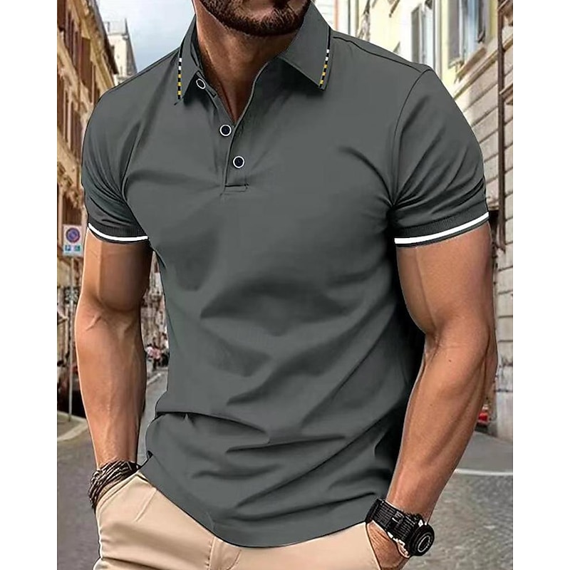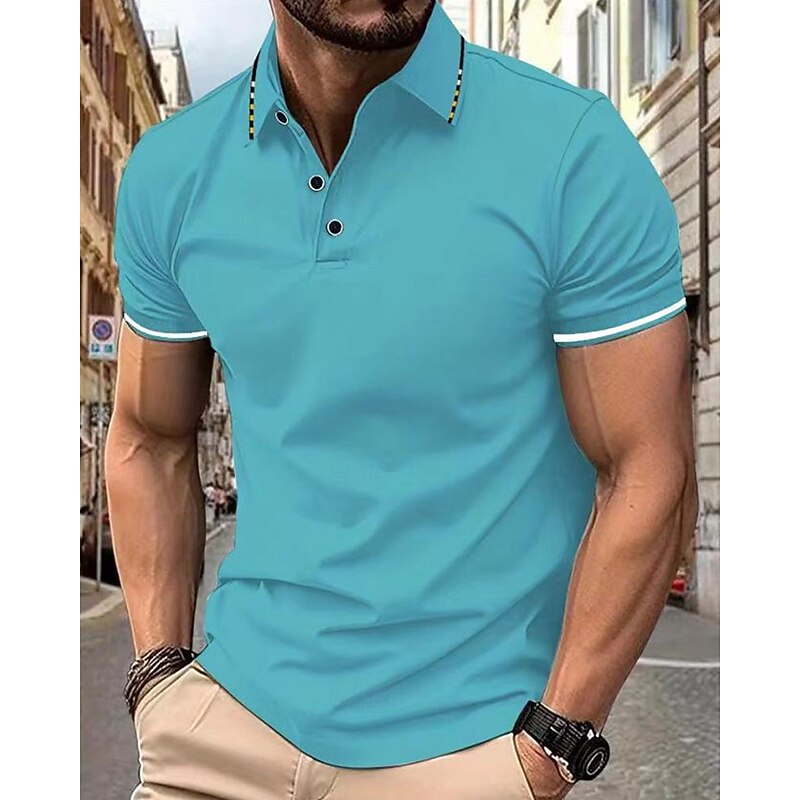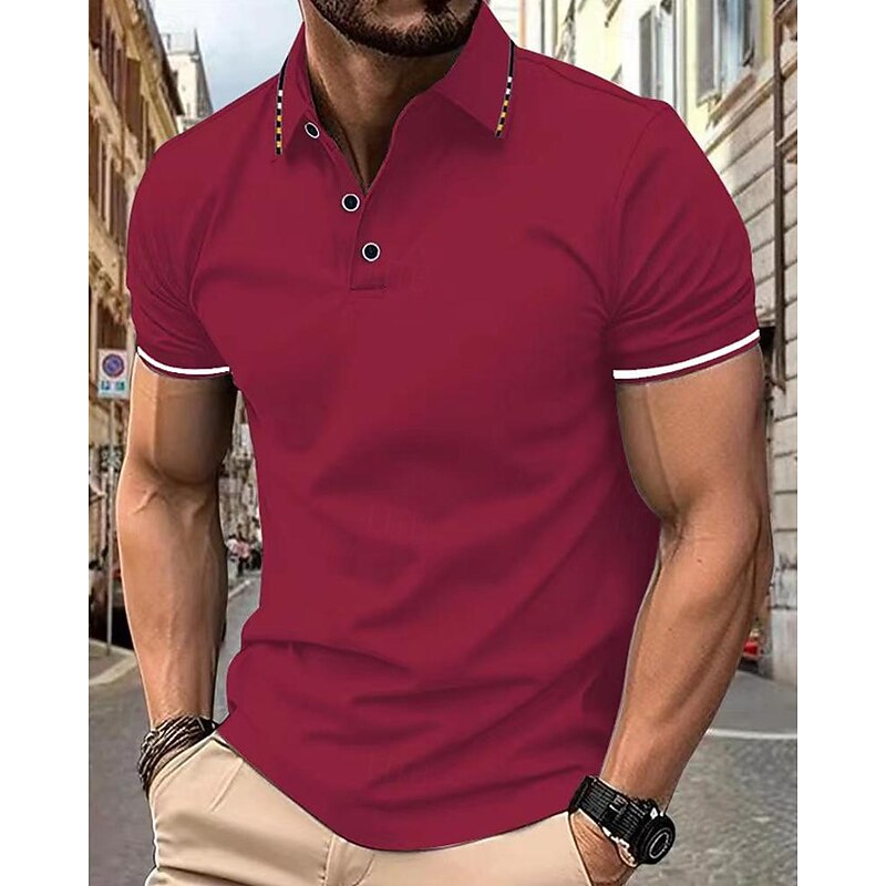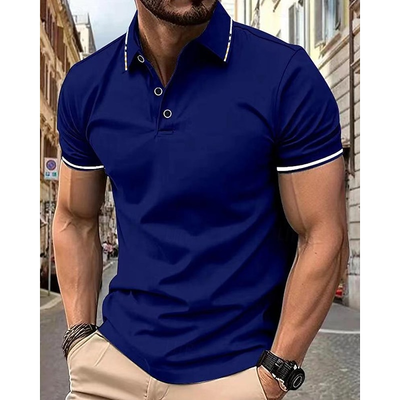More information about Men's Golf Shirt Golf Polo Work Casual Lapel Short Sleeve Basic Modern Color Block Patchwork Button Spring & Summer Regular Fit Wine Lake Blue Black White Pink Navy Blue Golf Shirt