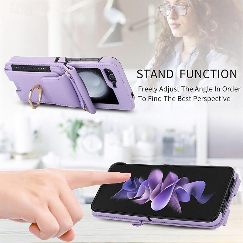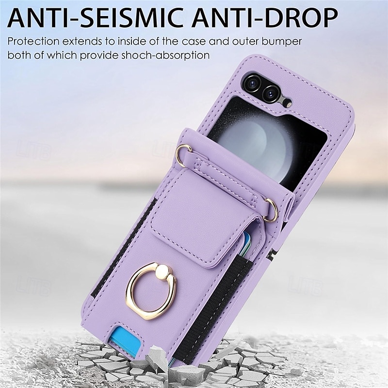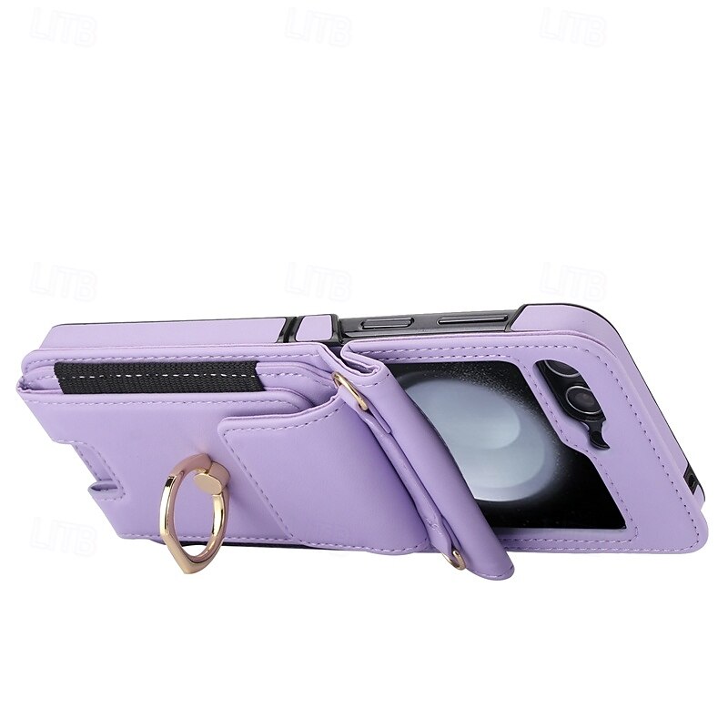 More information about Phone Case For Samsung Galaxy Z Flip 7 Z Flip 6 Z Flip 5 Z Flip 4 Z Flip 3 Back Cover Ring Holder with Lanyard with Wrist Strap Retro TPU PU Leather
