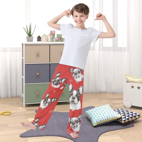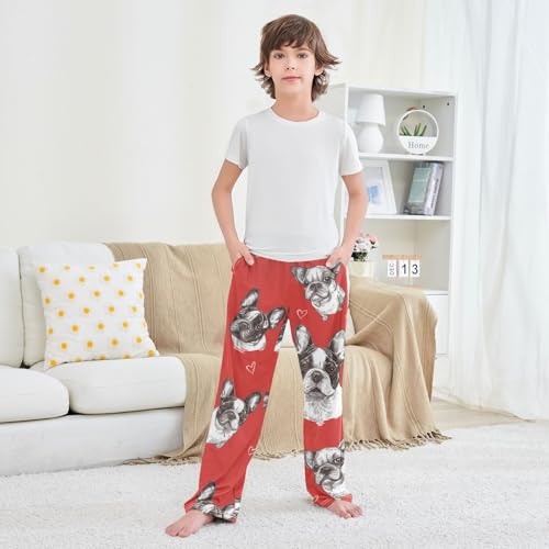 French Bulldog with Love Boys Long Pants Soft Trousers Elastic Waist Kids Lounge Bottoms with Pockets S-XL 4