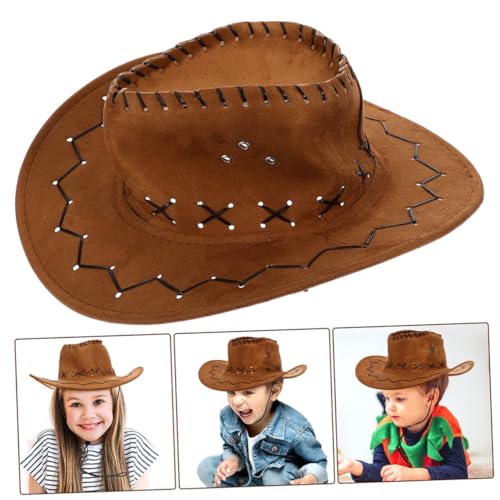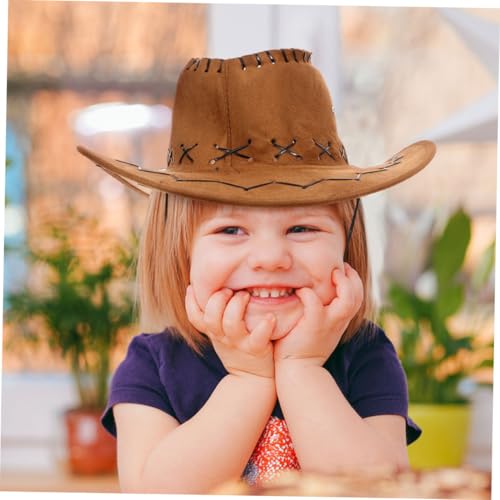 2pcs Cowboy Hat Wide Brim Fedora with Chin Strap for Boys and Stylish Sun Protection Western Hat for Cosplay and Outdoor Fun Chocolate 6