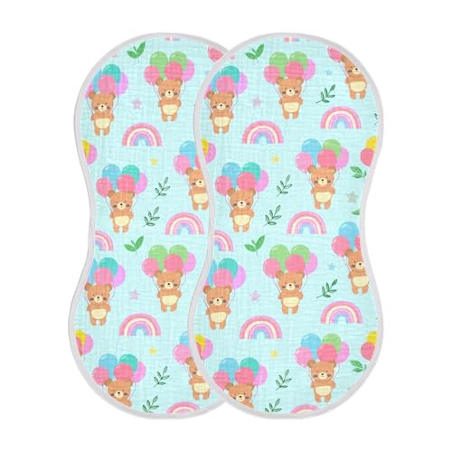 HOT ! Balloon Bears Pattern Muslin Baby Burp Cloths - Super Absorbent and Soft Burping Rags - Cotton Burp Clothes Set for Boys and Girls, 4 Pack