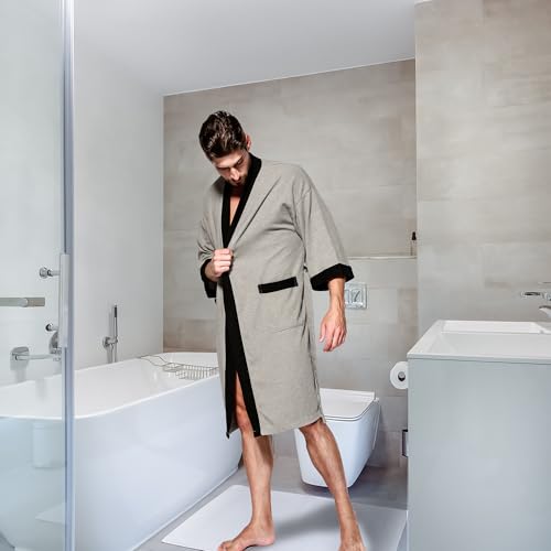 • Men's waffle kimono robe is designed with two front pockets offer convenience. The men's cotton bath robe is ideal to take small objects like cellphones and key rings.