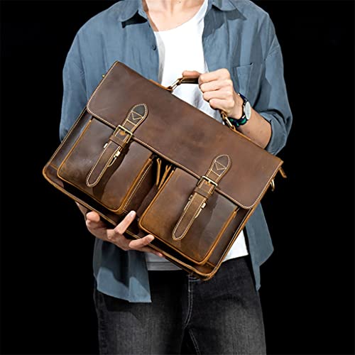 More information about Genuine Leathe Vintage Man Handbag Briefcase Men Shoulder Bags Brown Business 15.6 Inch Laptop Bag