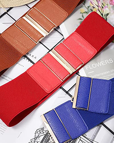 6 Pieces Women Wide Belt Elastic Cinch Waistband Stretchy Dress Waist Belt with buckle for Ladies, One Size 6