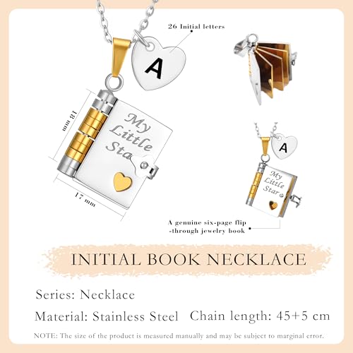 • My Little Star Book Necklace:This is a book initial necklace full of memorabilia and your love!Let her know she’s your little star with this heartfelt mini book necklace. Each page is engraved with uplifting, encouraging messages and Comes in a beautiful box, ready to surprise someone special.