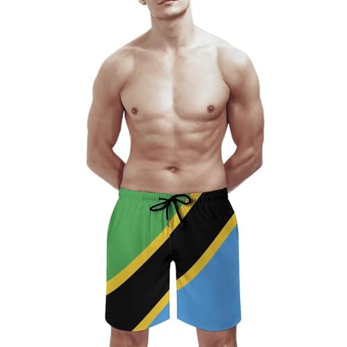 Adugen Origei Tanzania Flag Shorts Surf Men's Beach Swim Trunk 1