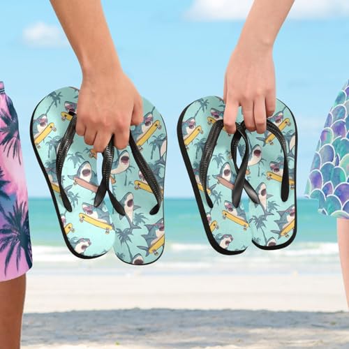 ALAZA Cute Skateboarding Shark Flip Flops for Women Fashion Beach Slippers Comfort Mens Flip Flops Non-Slip Rubber Shower Slippers Sandal for Hotel Travel Sport,XS 3