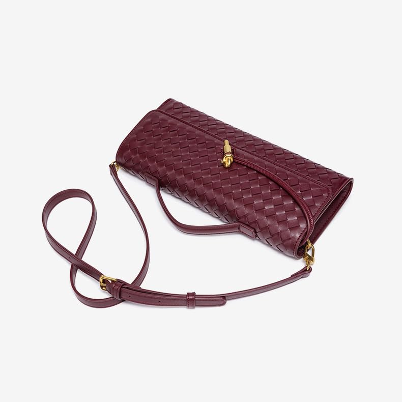 • LUXURIOUS MATERIAL: Crafted from high-quality woven leather in rich burgundy color, showcasing intricate basketweave detailing