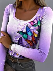 More information about Easter Women's T Shirt Ribbed Graphic Square Neck Long Sleeve Casual Floral Butterfly Vintage Stylish Regular Tops Daily Print White Blue Purple off-white Summer Spring Fall