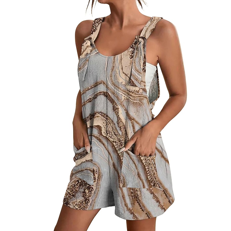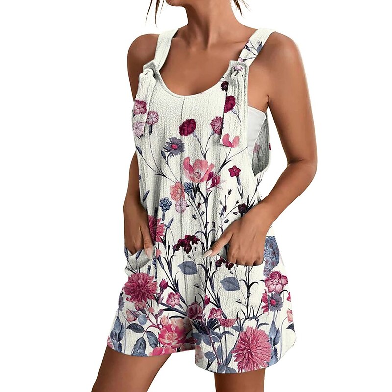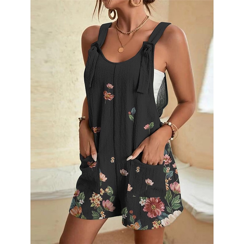 Womens Jumpsuits Casual Summer Overall Patch Pocket Print Floral Crew Neck Streetwear Daily Vacation Regular Fit Sleeveless Black White Yellow S M L 11