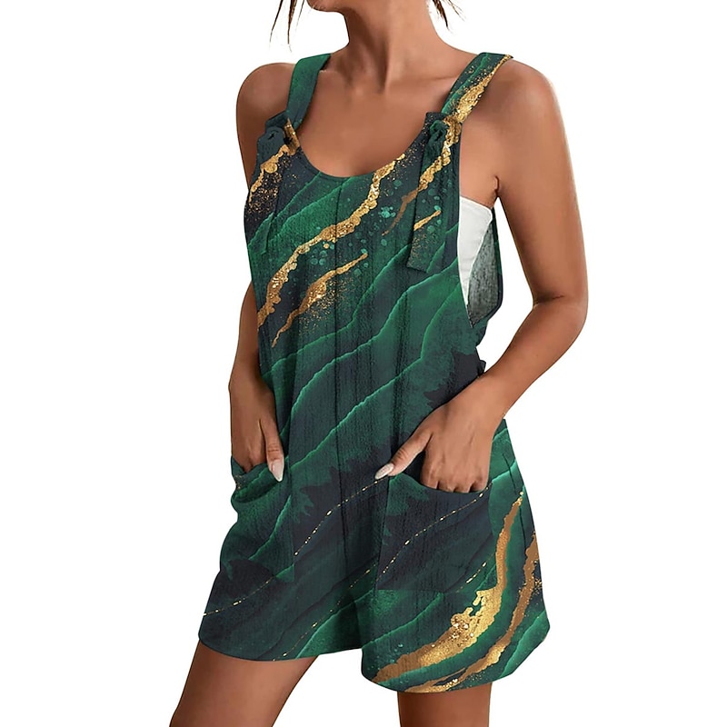 HOT ! Womens Jumpsuits Casual Summer Overall Patch Pocket Print Floral Crew Neck Streetwear Daily Vacation Regular Fit Sleeveless Black White Yellow S M L
