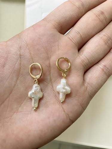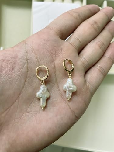 Nature Freshwater Pearl Cross Earrings Elegant Christian Pearl Jewelry, Beachy Pearl Jewelry, Cross Pearl Earrings, Baroque Pearl Earrings 4