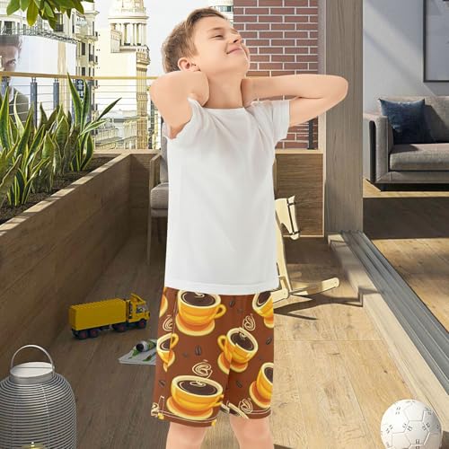 J JOYSAY Cup Beans Aroma Brown Boys Athletic Shorts Kids Youth Casual Shotrs with Pockets Elastic Waistband 6